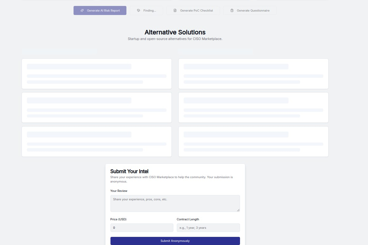 One of VendorScope's most valuable features is its ability to identify startup and open-source alternatives to expensive enterprise solutions. This is particularly valuable for organizations looking to optimize their security stack budget or explore innovative new approaches.